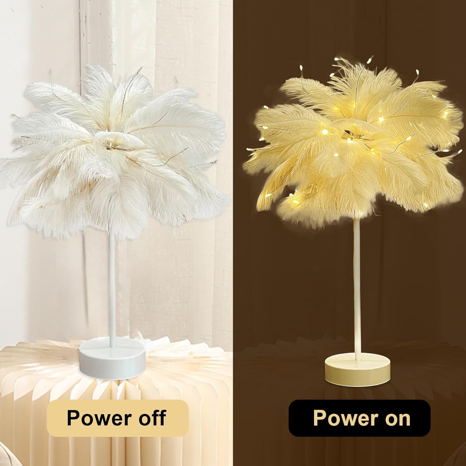 - 🎁【𝐆𝐫𝐞𝐚𝐭 𝐆𝐢𝐟𝐭𝐬 𝐟𝐨𝐫 𝐀𝐧𝐲 𝐎𝐜𝐜𝐚𝐬𝐢𝐨𝐧】The feather lamp is very suitable as wedding gifts, Valentines Day gifts, and graduation gifts for classmates, girlfriends,wives,mothers,bridal showers, baby showers, birthdays, quinceaneras and other special events that call for a bit of oomph. The soft feathery top with LED lights is sure to add a touch of magic to any setting.
