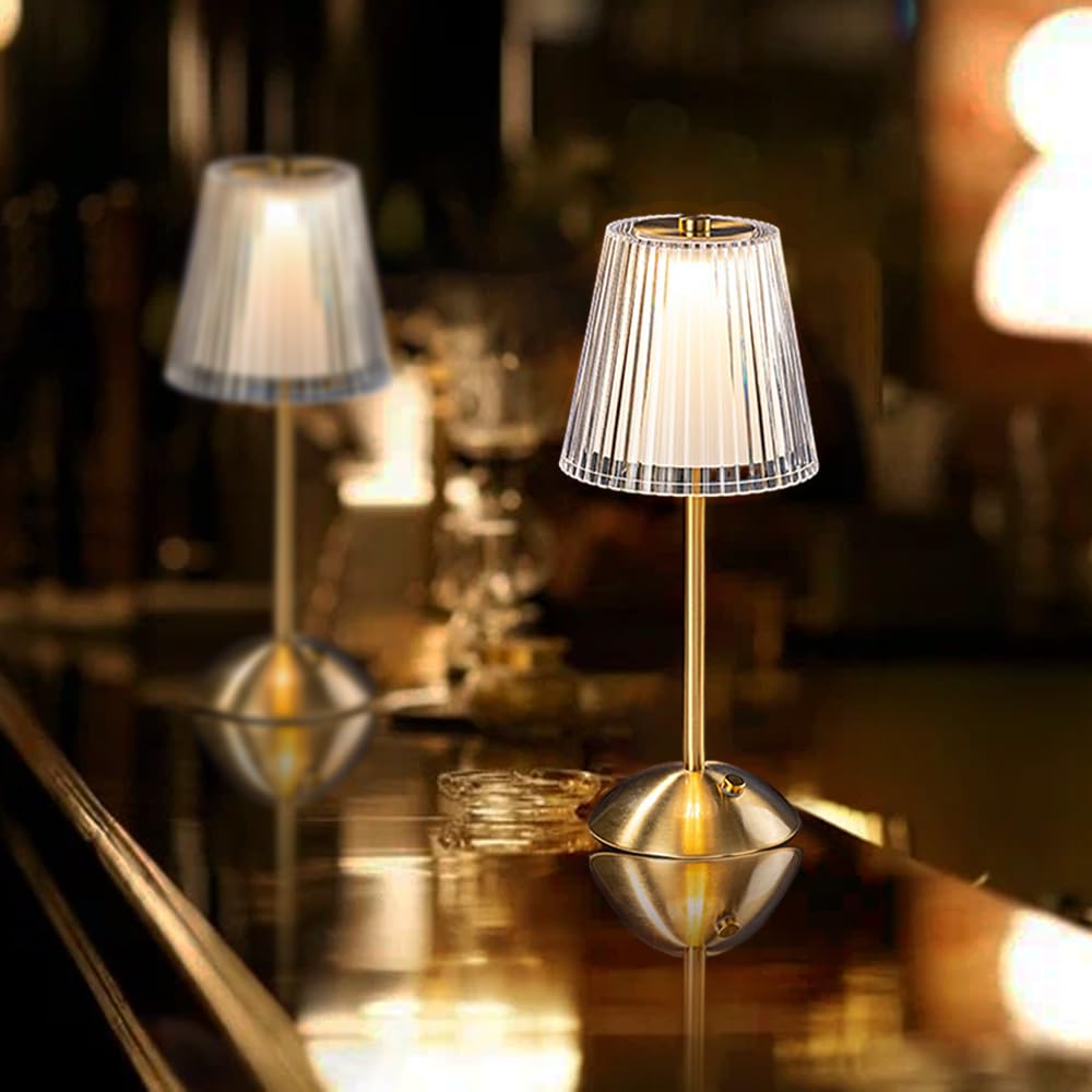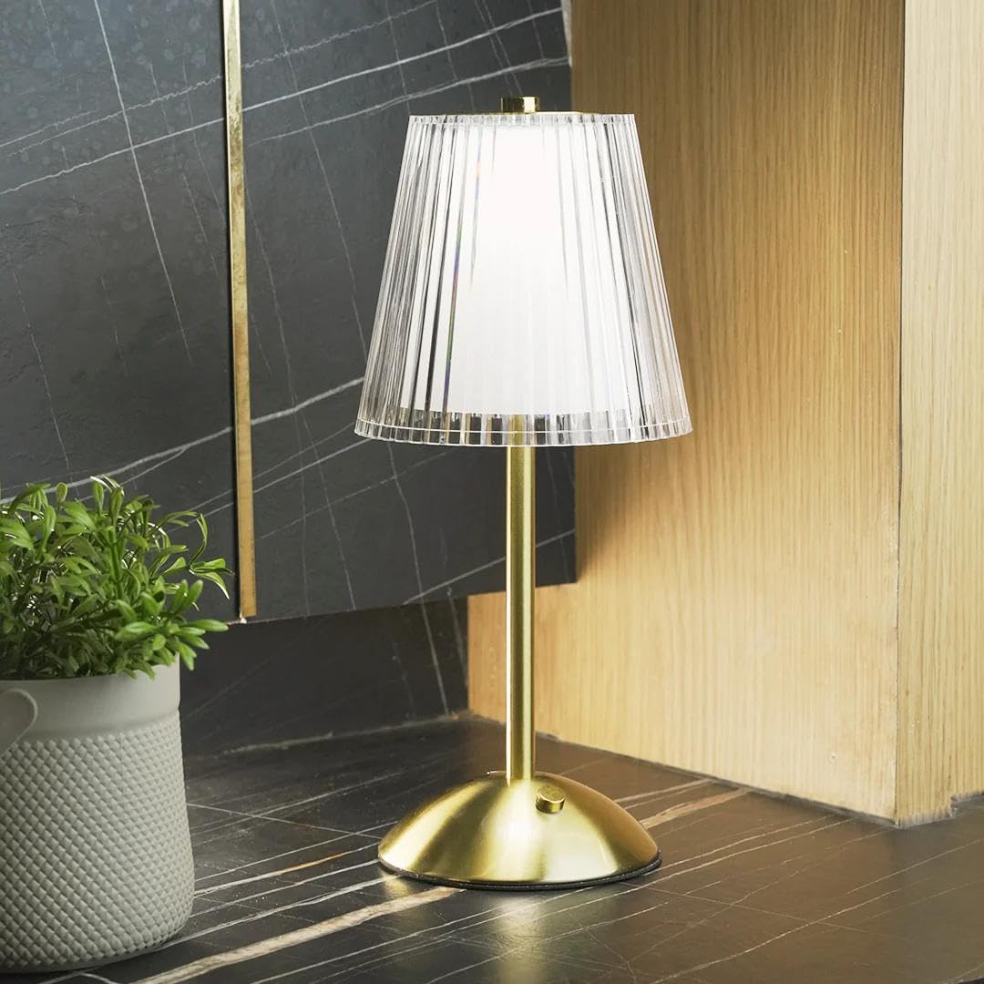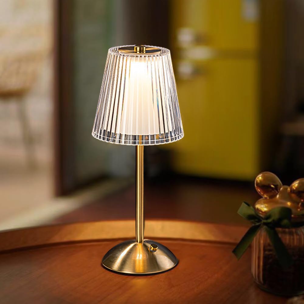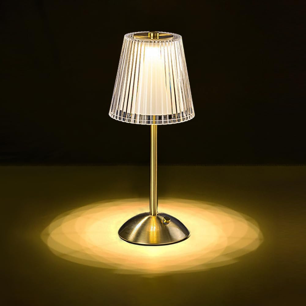 - Specification: Power: USB Operated Size: 11.81 inches height, 5.12 inches diameter Color Temperature: 3000K Warm Light/4500K Natural Light/6000K Cold Light Material: Metal base + Optical Acrylic Crystal Lampshade Light color: White light, Natural White light, Warm White light (all adjustable brightness) Color:Brass Gold